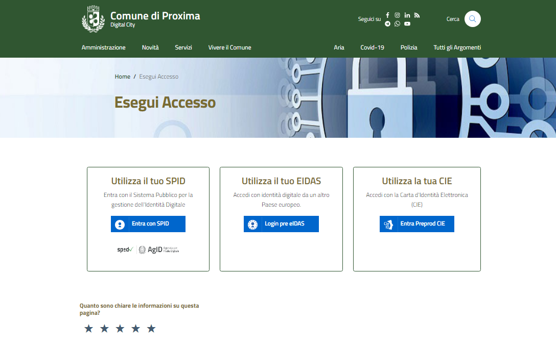 E' possibile accedere alla propria Area mediante Spid, Cie o eIDAS (electronic IDentification Authentication and Signature).