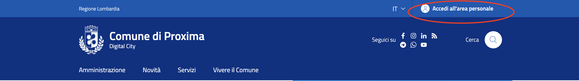 Nella sezione in alto a destra è presente la voce "Accedi all'area personale".