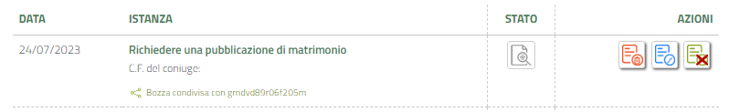 Dopo averi inviato l'istanza, potremo sempre tenere sotto controllo lo stato nella bacheca, eliminandola, completandola una volta completata dal coniuge o annullando la condivisione